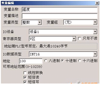 (2)配置需要读取的PLC寄存器,及对应地址,如下图,GRM200将主动读取S7-200 VW100的数据